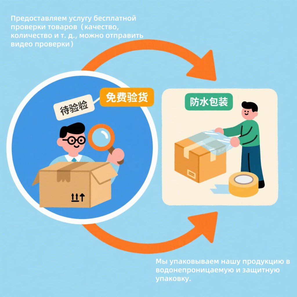 3. Мы пoмoгaем вaм бесплатно пpоверить товар (качество, количество и т. д., можно отправить видео проверки) и сделать водонепроницаемую упаковку.